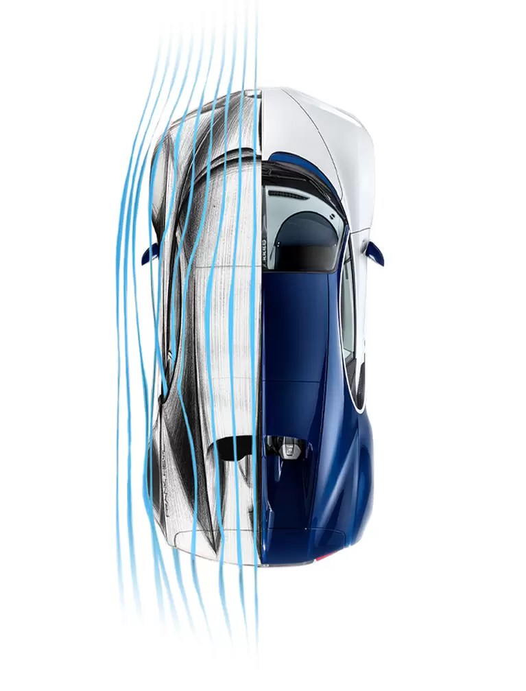 To reach its unprecedented levels of performance, the CHIRON effortlessly merges its captivating beauty with sleek, muscular efficiency; a spectacular reinterpretation of the BUGATTI design DNA. The intelligent air intake management significantly improves aerodynamics and enhances the cooling efficiency for engine and brakes.